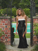 Sleek Strapless Black Satin Dress With Ivory Contrast Detail | E11459