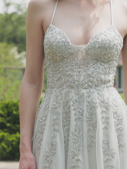 Elevate your special occasion look with this Sparkly A-Line Flowy Beaded Gown. Featuring an elegant A-line shape that enhances your silhouette, this gown sparkles beautifully with intricate beadwork on the corset. The flowy and shimmery fabric ensures graceful movement, while convenient hidden pockets add a practical and stylish touch. Perfect for making a memorable entrance, this gown blends sophistication and functionality effortlessly!